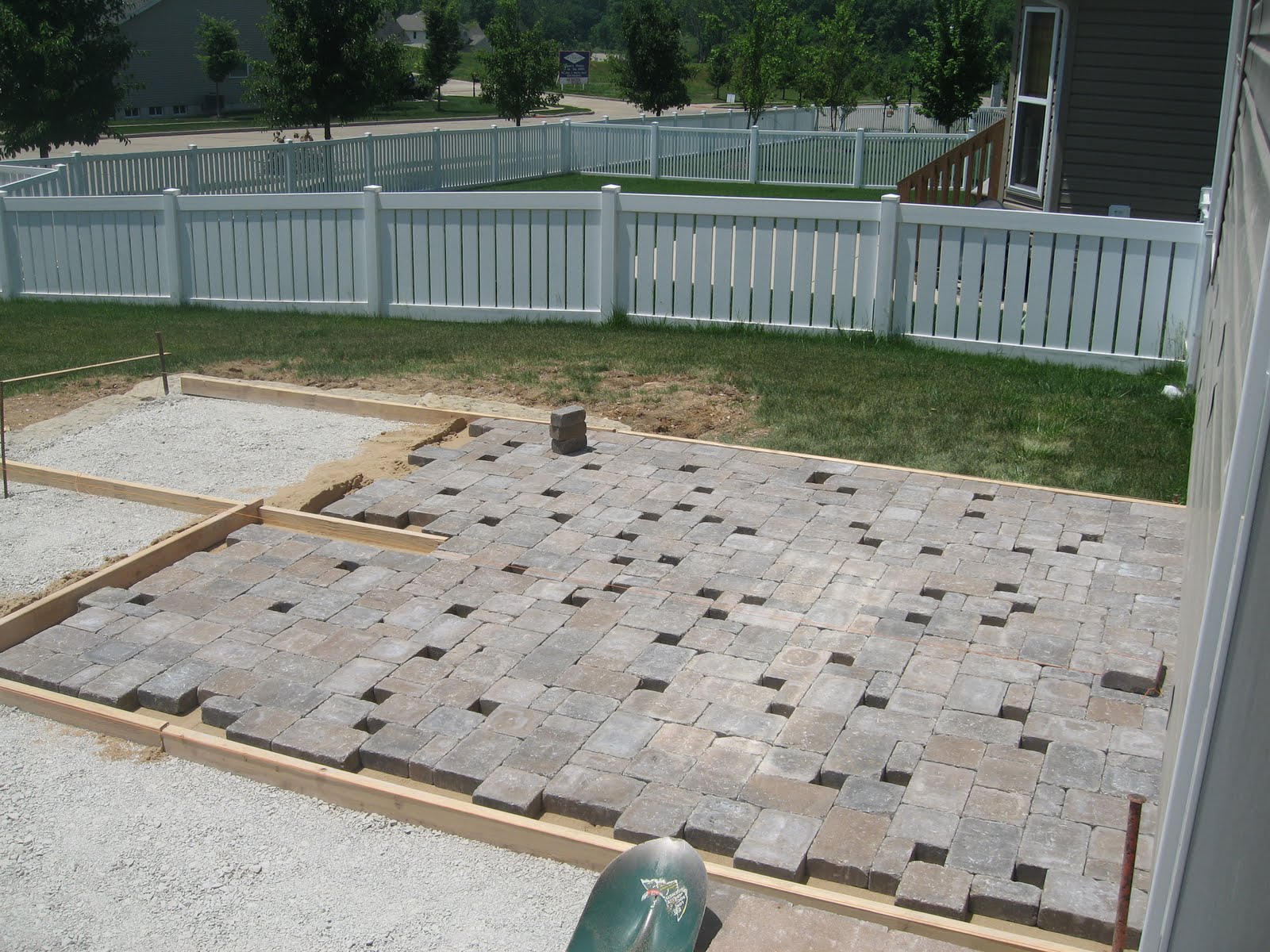 It was unbearably hot here in STL yesterday. It was at least 95*. Naturally, we decided it was the perfect day to spend outside working on the patio on the South side of the house. Todd and I started at 6:30 in the morning. My neightbor Mark came over and helped for about 3 hours. What a huge help that was. After about 11:30 Todd and I were on our own. We worked until about 5:30, then called it quits. We actually got a hell of a lot done considering there was only two of us. We drank tons of water to try to stay hydrated. Erin filled our 2 gallon water jug twice and we both had a quart of Gatorade. Nvertheless, I got heat cramps in my forearms and legs. Todd got them too in his hamstrings. We took the kids to the pool which was refreshing. I kept getting cramps in the pool, so I probably looked like a spaz. Enjoy the pictures..........